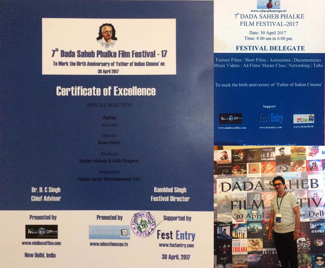 On 30th April, there was a screening of our short film "AARSA" at Delhi in Dadasaheb Falke Film Festival. And we got "Certificate Of Excellence".